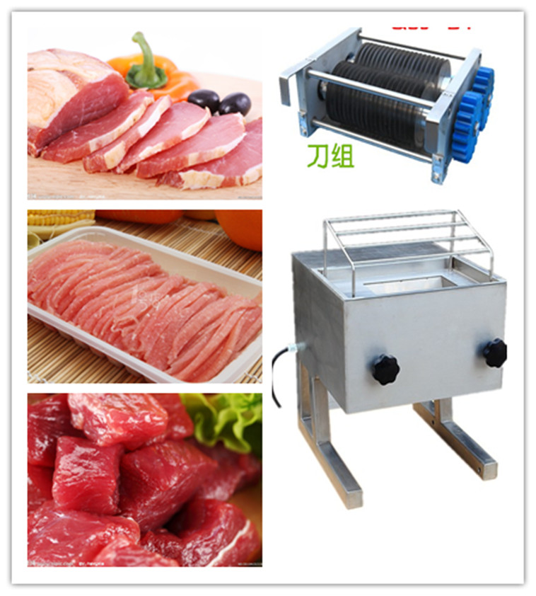 ●本機可根據客戶加工產品需要,配置不同形式刀組,分別實現對無骨肉類及類似榨菜富有彈性的食物一次性切片、二次切絲、三次切丁功能,滿足餐飲行業產品種類多的要求。
